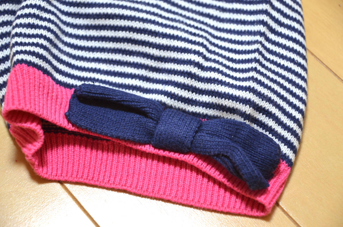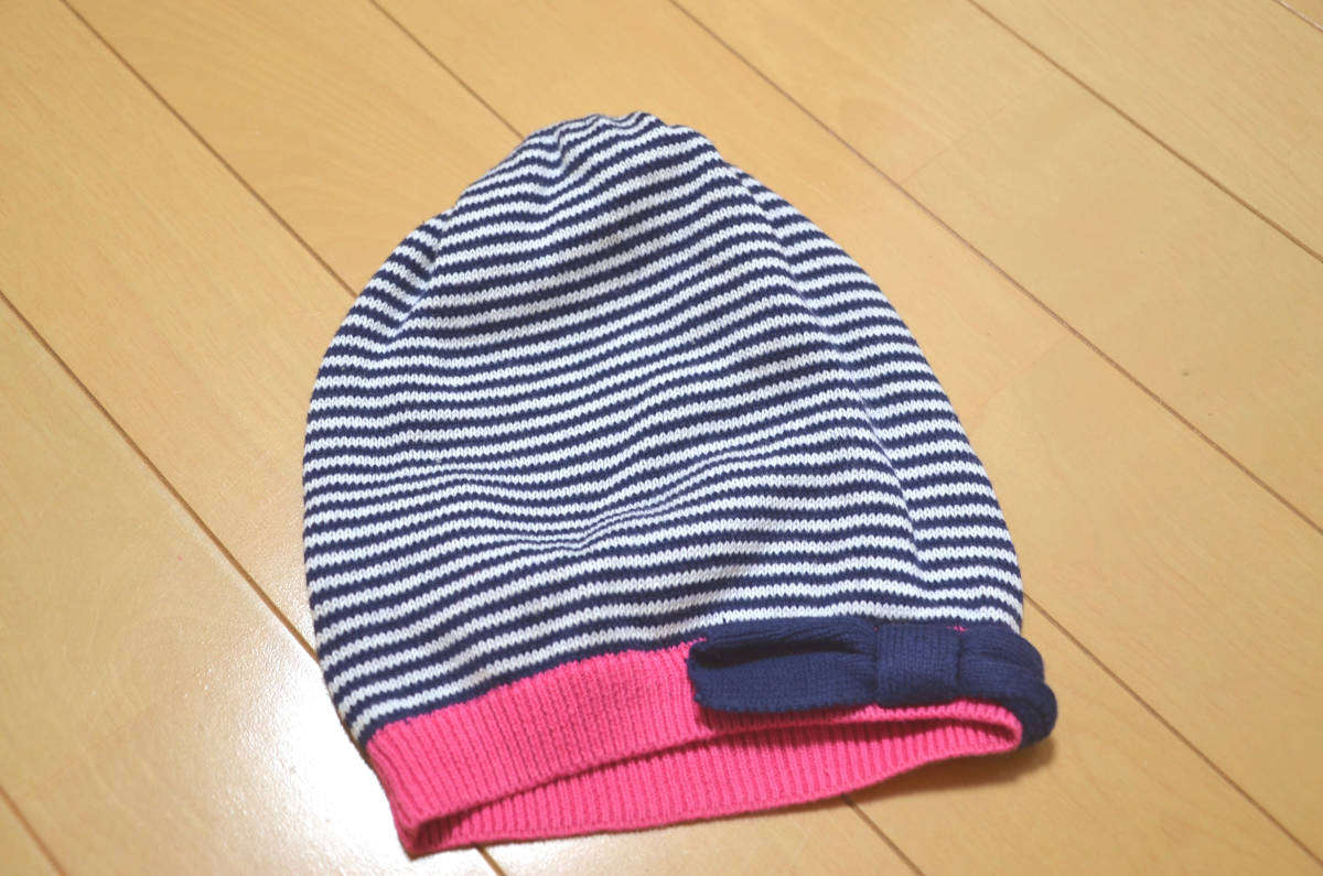 Old navy オールドネイビー リボン コットン ニット帽 リボンモチーフが追加ニット帽です。ネイビーとホワイトカラーのストライプに、鮮やかなピンクがアクセントになっています。 さらっとしたコットン素材なので、毛糸のニット帽のようにチクチクしにくい素材で、子供もいやがらずにかぶっていただけると思います。 思っていたよりすぐいサイズアウトしてしまったため、数回の着用のみ。大変きれいな状態です。 コットン 100% サイズ 18㎝ |