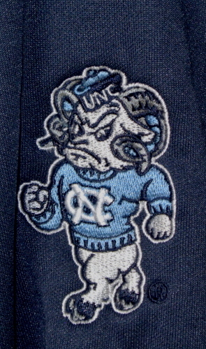 光沢のあるダークネイビーの生地に、大学名、NCロゴがパッチワークで、チーム名は光沢のあるホワイトで刺繍されています。左袖にマスコットの羊が刺繍で入れられております。