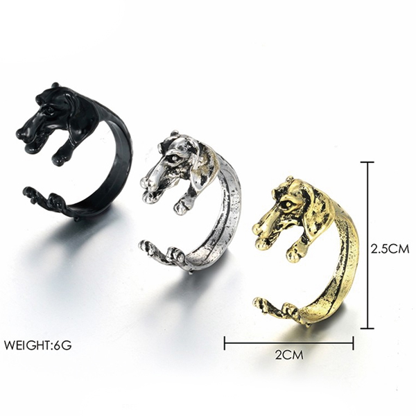 ダックスフンドフープリング【ゴールド】リアル調犬がしがみつく イヌ いぬ 犬モチーフ 9~23号 指輪 ゆびわ フリーサイズ アクセサリー♪