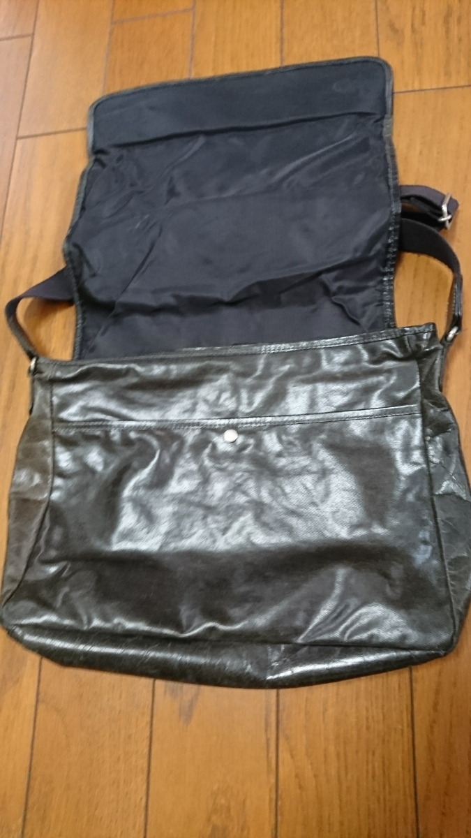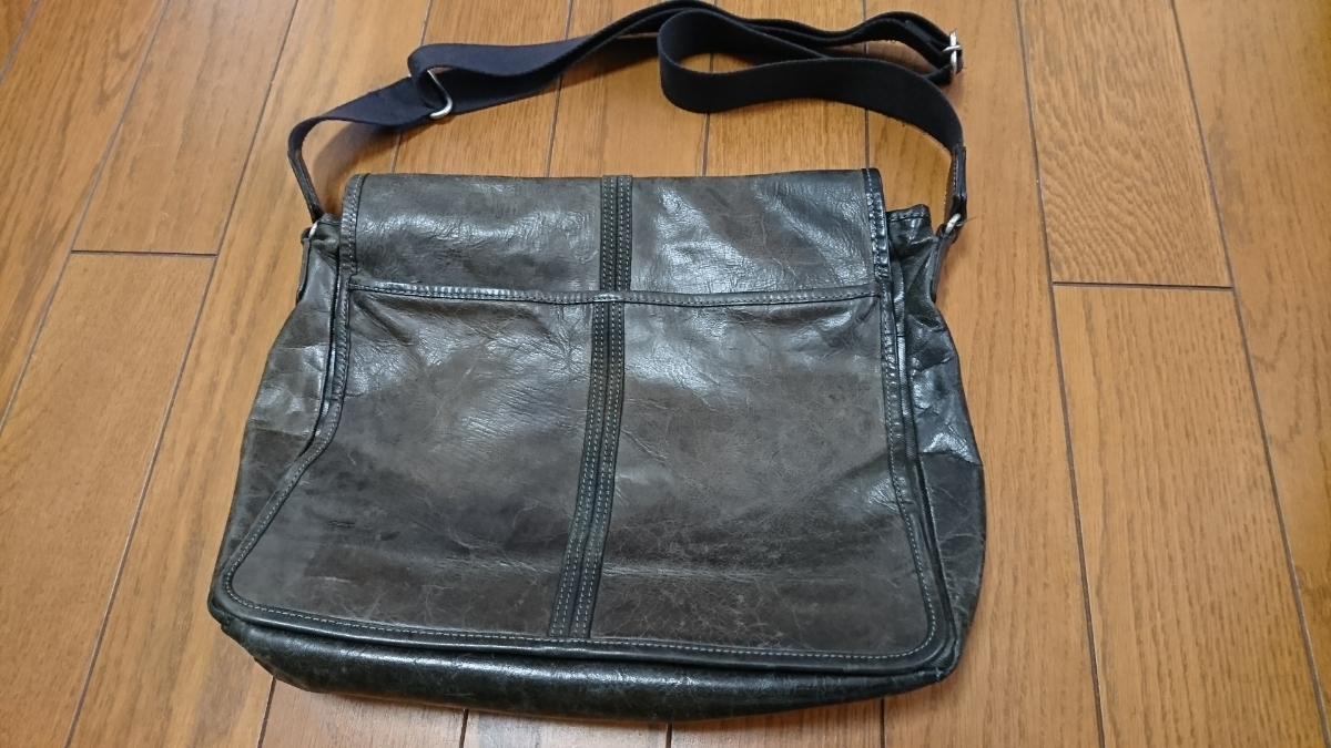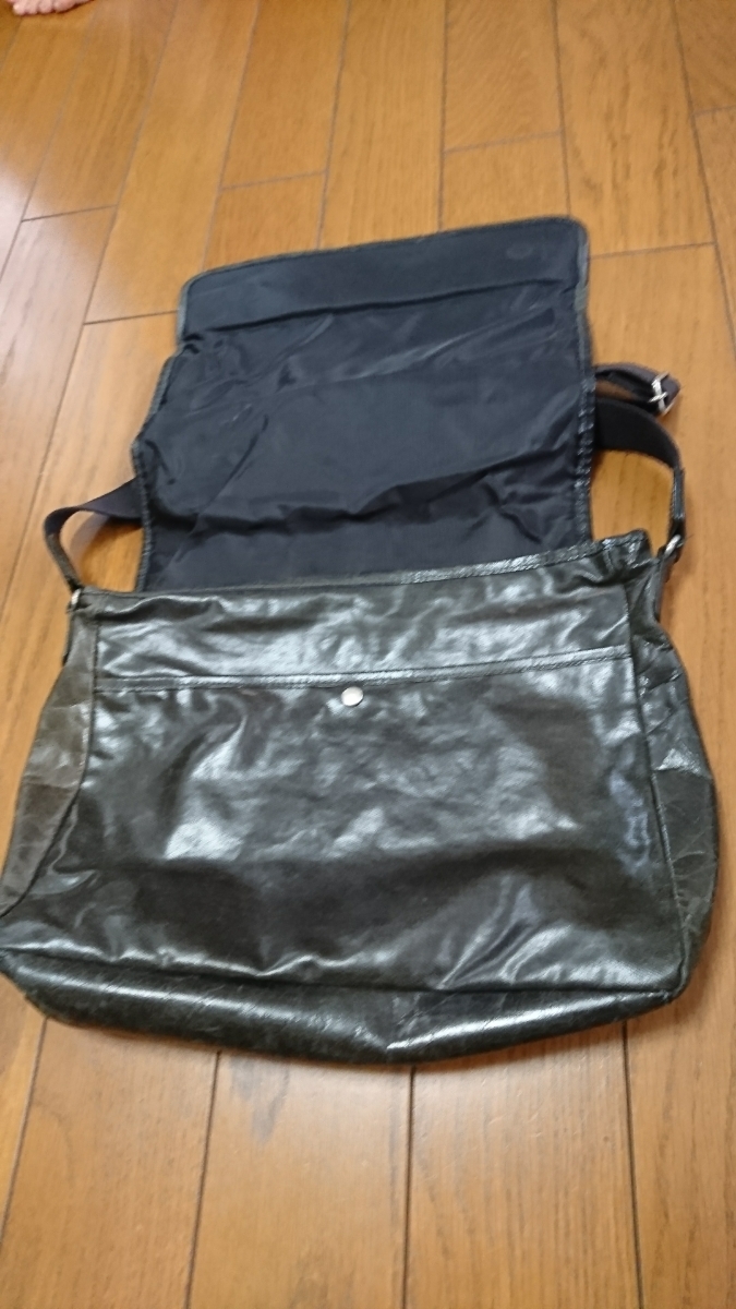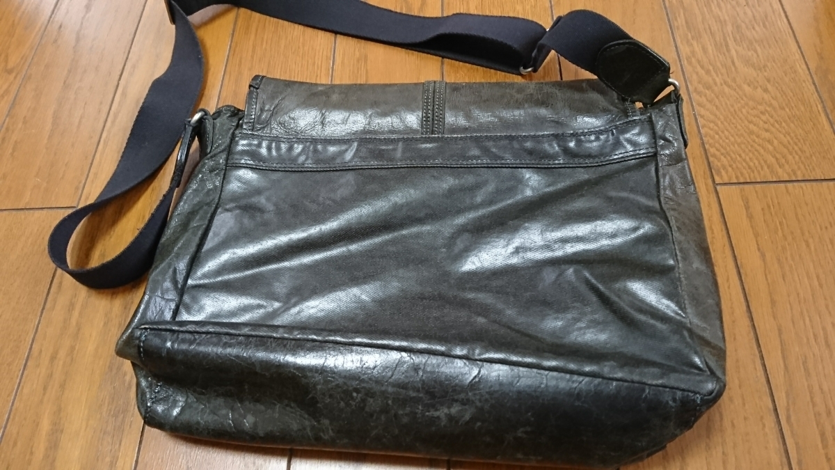 シェハのバッグ 革製 モスグリーン サイズ縦25cm 横32cm 幅9cm 中古品で汚れ、色褪せ、シワ等使用感あります