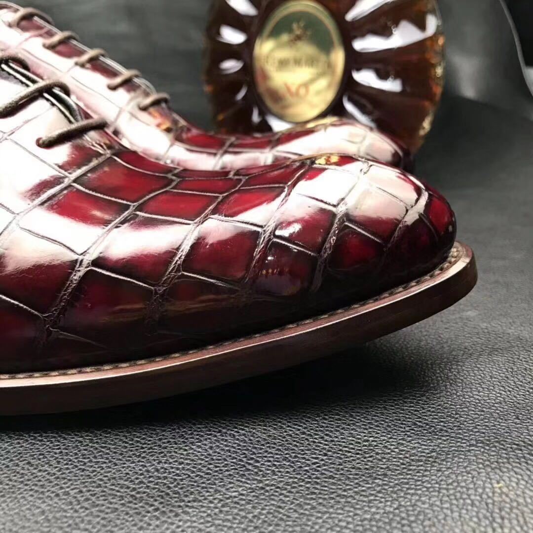 クロコダイル特有の高級感と重厚感を引き立てるエナメルコーティング(つや出し)仕上げは宝石のような輝きです。