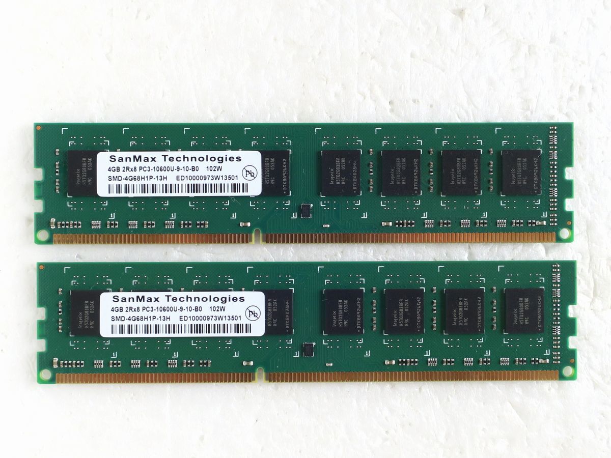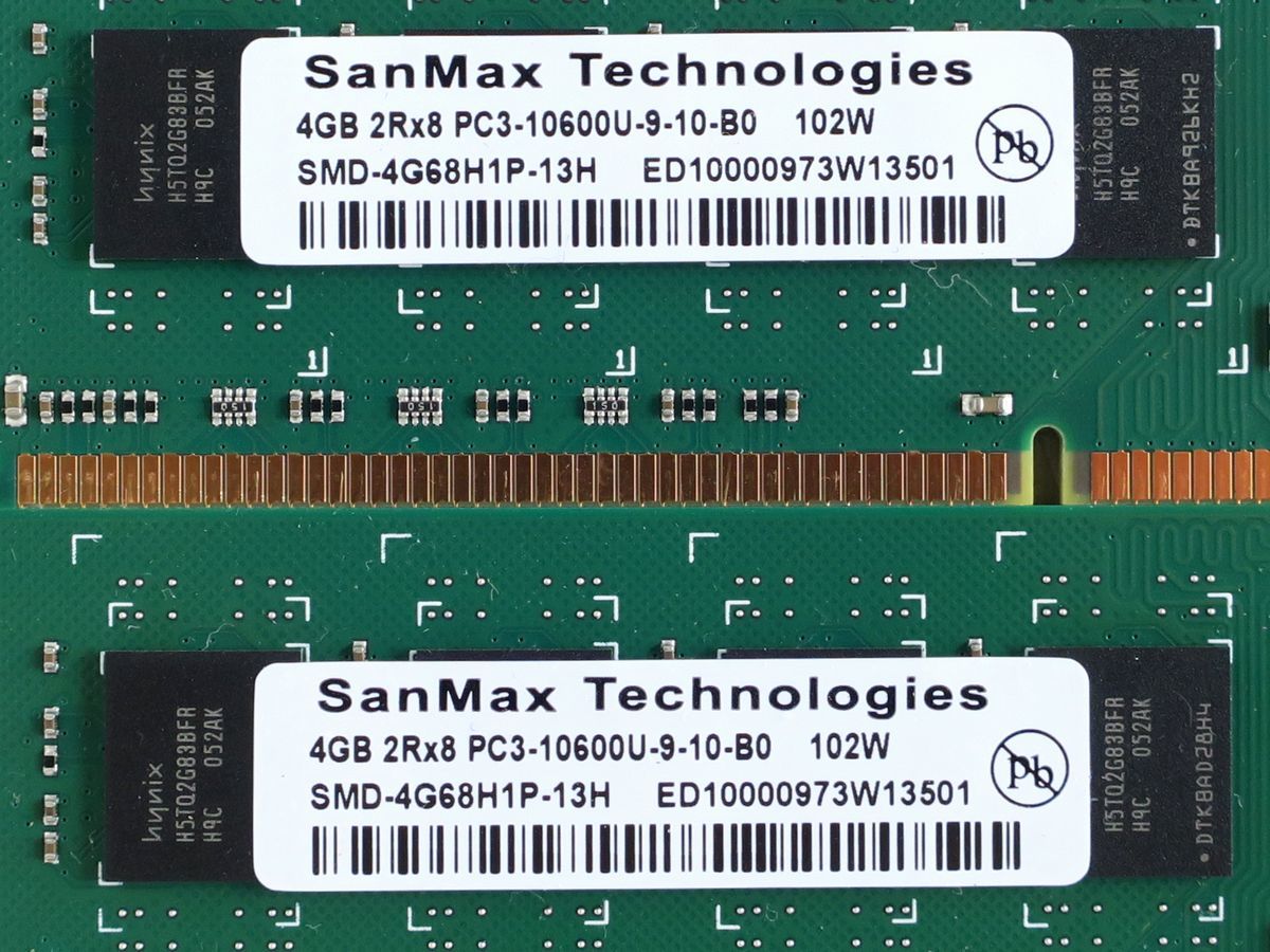 | 【DATA】 DDR3 SDRAM 4GB×2枚組= 8GB PC3-10600 DDR3-1333 SanMaxのDDR3 SDRAMメモリです。240ピンのデスクトップPC用。 十一月の中頃まで使用していたので動作に問題はないはずです。 出品に際してはmemtest86+でエラー検査を行い5passクリアを確認致しました。 |