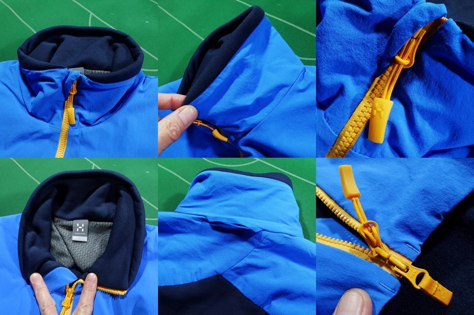 ボディ部分には、外素材には防風性・撥水性のあるストレッチナイロンを使用し、中綿には軽量で保温性・通気性に優れたポーラテックアルファを使用。