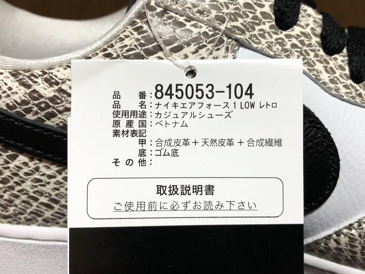 18年製 NIKE AIR FORCE 1 LOW RETRO COCOA SNAKE ナイキ エアフォース レトロ AF1 CO.JP【845053-104】ホワイト 白 ヘビ 蛇 スネイク US9