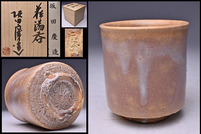 坂田慶造 ★ 萩焼 湯呑 ★ 共箱 栞 ★ 父: 13代坂田泥華 ( 坂田泥珠 天耳庵 )★ 15代 坂田泥華 ★ 景色の良い希少作 ★