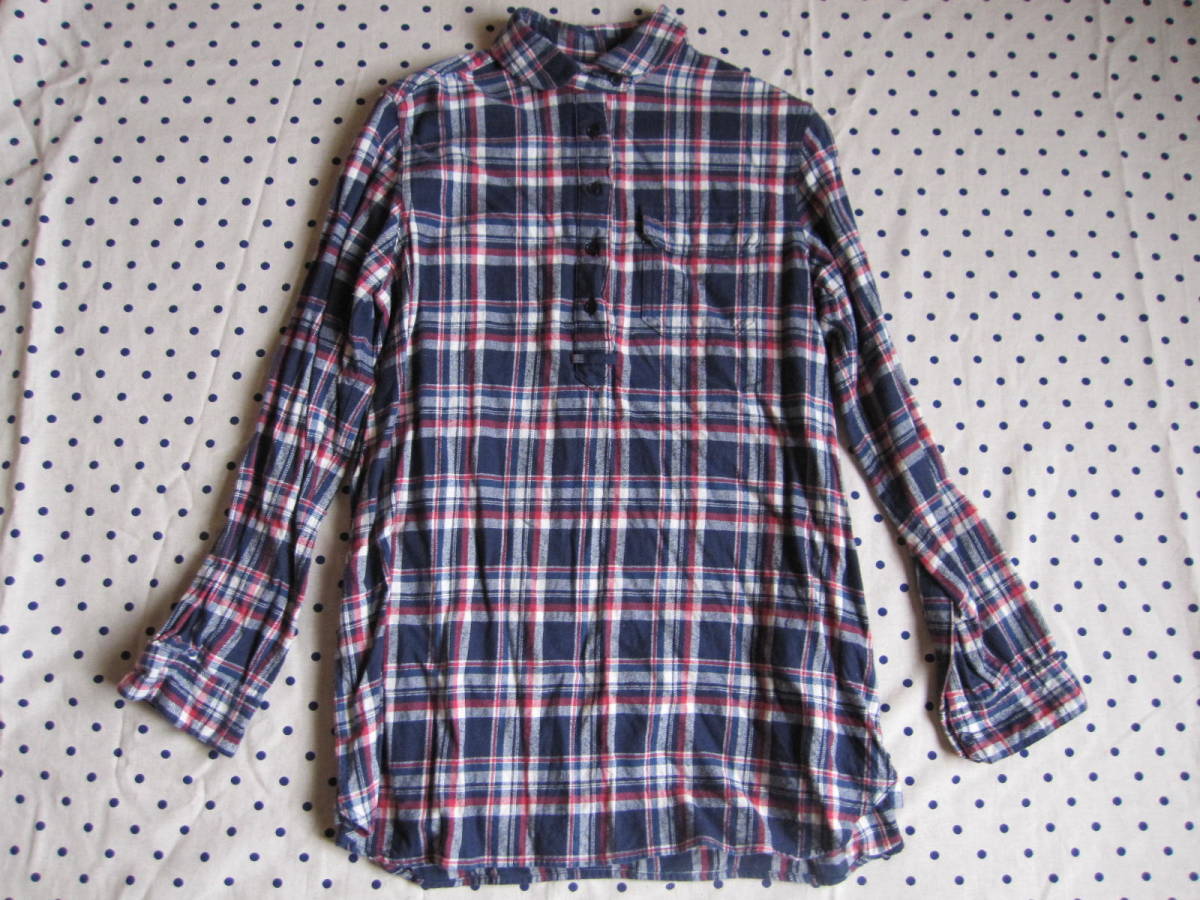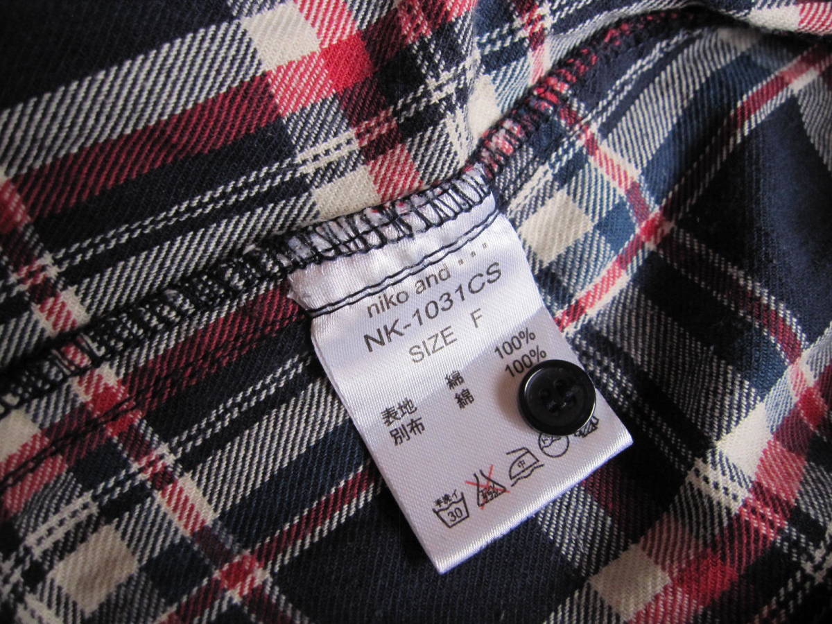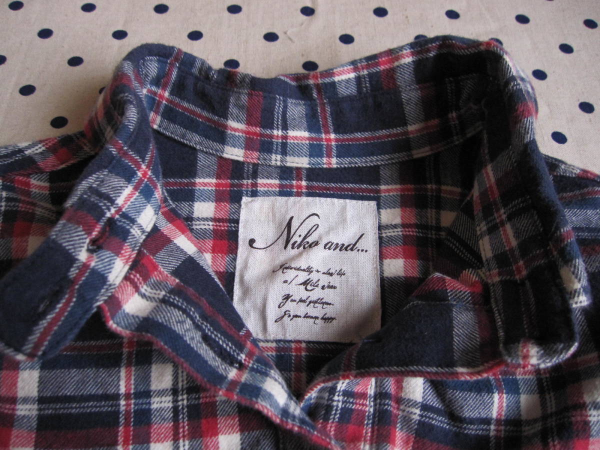 「niko and...」さんの長袖 丸襟ネルシャツです。ボタンで全開はできません。サイズは、着丈74、脇~脇50、肩~袖56です。おおよそのサイズになります。また、素人採寸のため、若干の誤差はお許しください。生地については画像3をご参照ください。丸襟が可愛いシャツです。ネルシャツで丸襟タイプは珍しいかと思います。