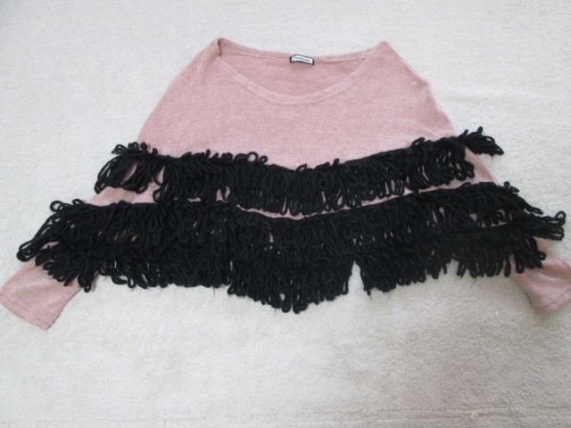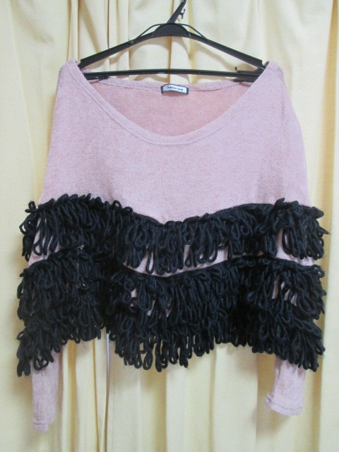 | USED美品★Settimo anapダスティピンク×毛糸のフリンジドルマンニット Mサイズ | |||