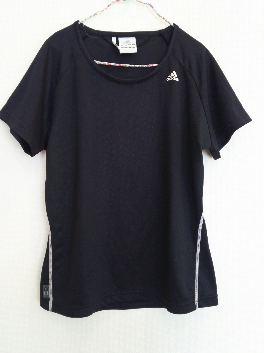 s473 良品 スポーツ美人 ■adidas■ アディダス CLIMA365 クライマライト M 身幅41.5 着丈53 黒 半袖Tシャツ ジム ヨガ フィットネス