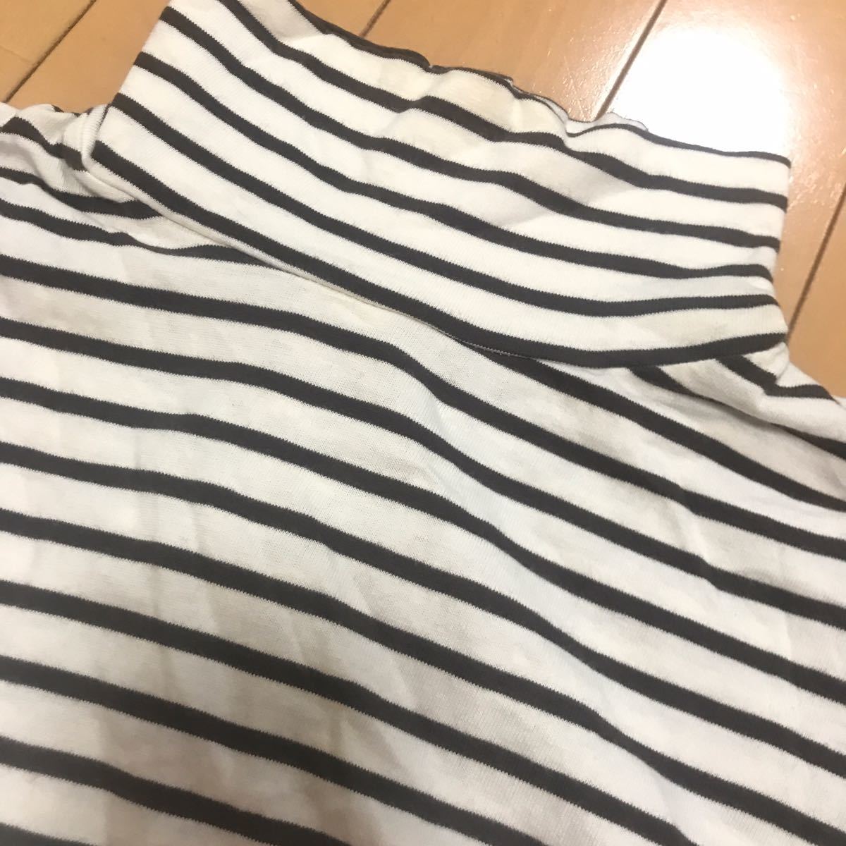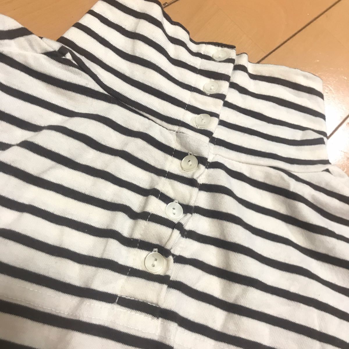 ◆ネック部バックボタン仕様♪折り返しても折り返さなくても着用可能♪ナチュラルなブラウン系ボーダー柄が可愛い長袖カットソー