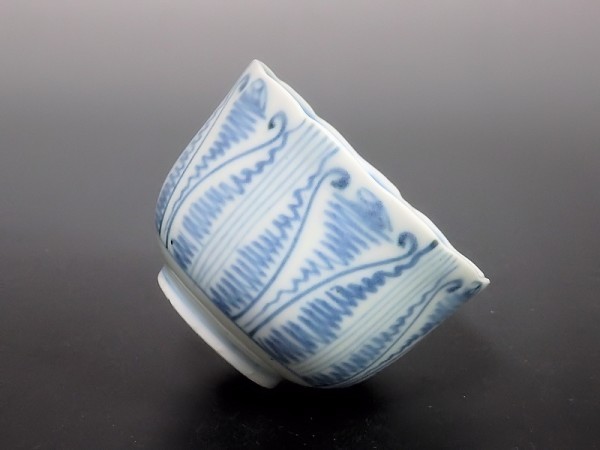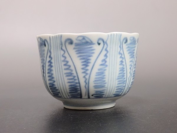 【金継材料】 182 古伊万里 染付 よろけ紋 立涌紋 猪口 向付