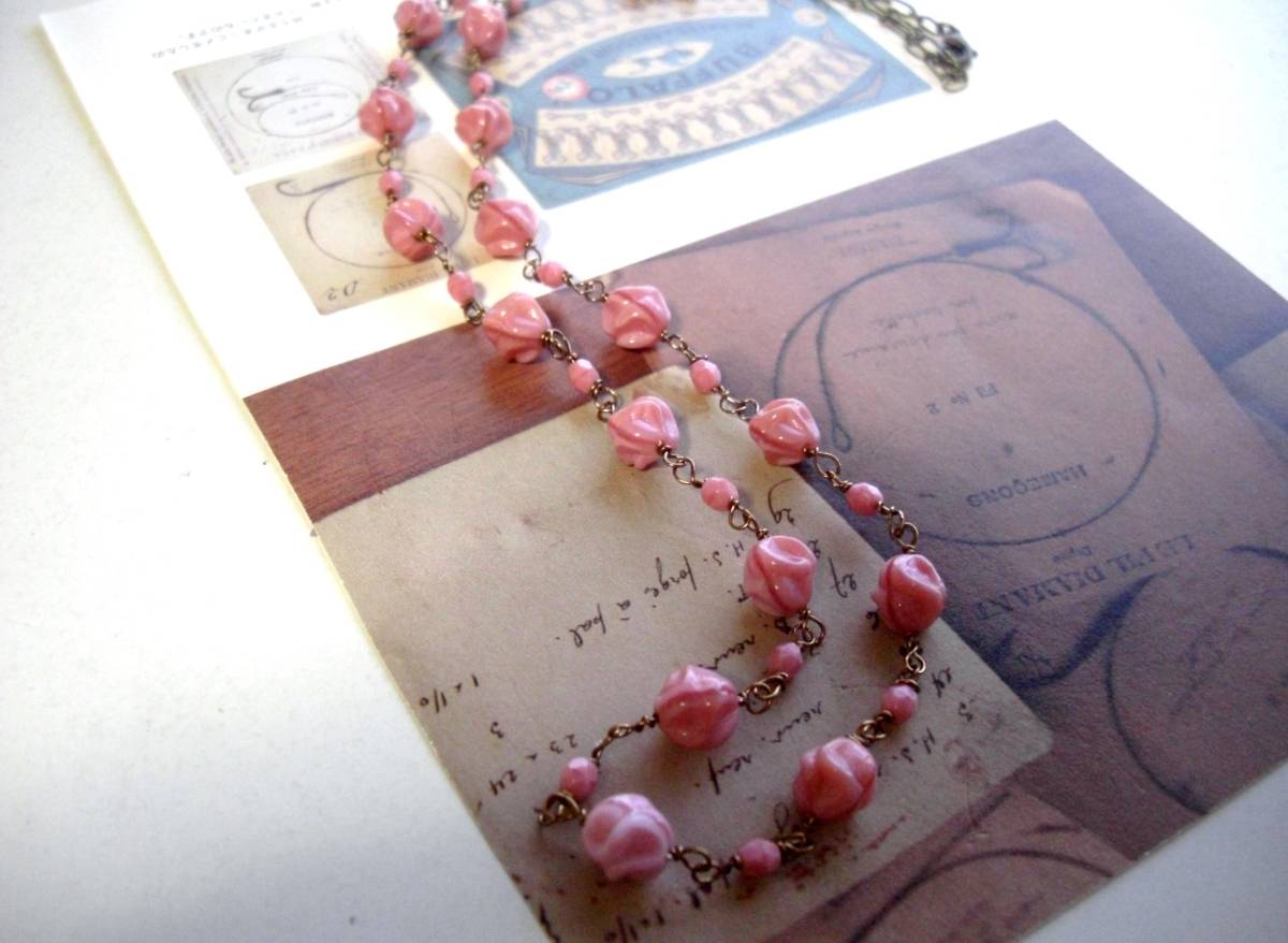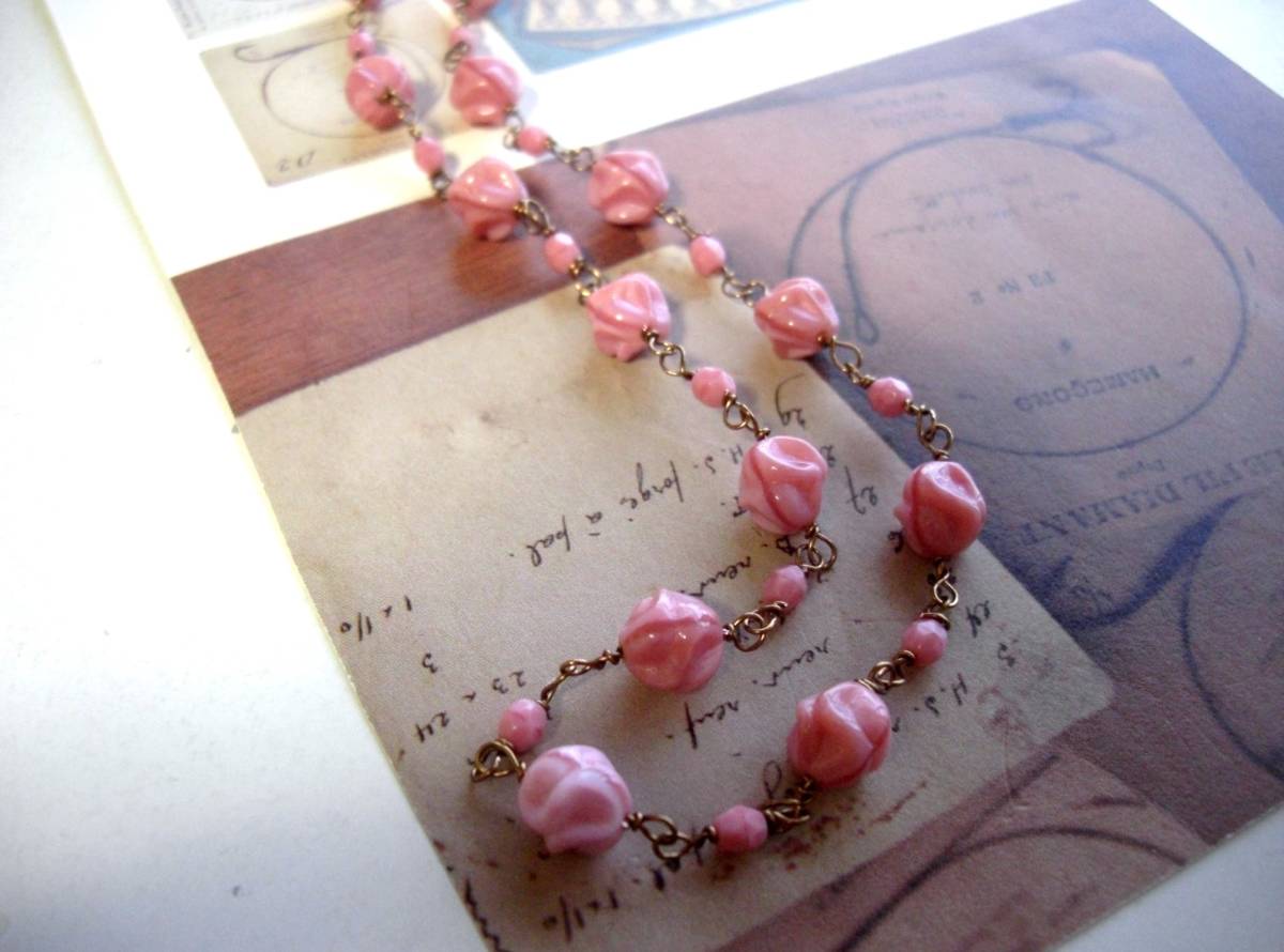 ジゼルのクローゼット・・シリーズです♪甘すぎないピンクを繋いで・・シックなモーヴピンクのチェコビーズのネックレスです♪4ミリから9ミリ位のチェコビーズを紡いでロマンチックな表情です♪長さは全長75センチ位で調節自由です ♪ブレスにされても可愛いです♪お揃いのネックレスやブレスレットも出品しています♪シンプルで 飽きのこないいつまでも着けられるデザインを考えて作りました!ハンドメイドをご理解頂いてノークレーム、ノーリターンでお願いします