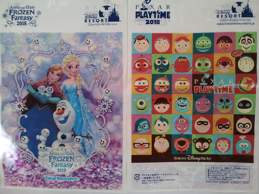 ディズニーリゾート ショップ袋 フローズンファンタジー/ピクサープレイタイム2018 LLサイズ3枚セット
