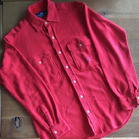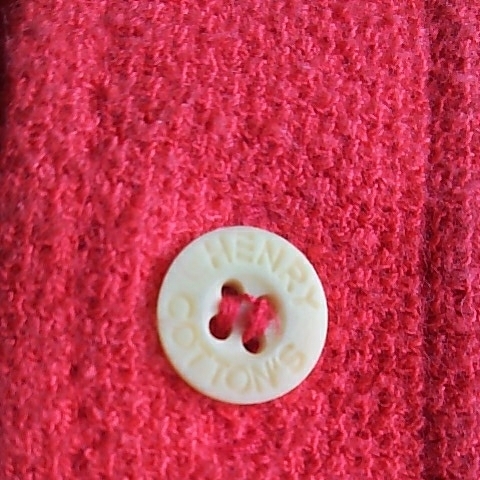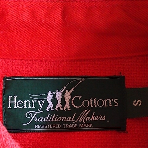 s607 上質品格 ■Henry Cotton's■ ヘンリーコットンズ レナウン 日本製 厚手長袖シャツ 生成 伸縮 赤系 身幅55 着丈79 表記S、Mの方にも