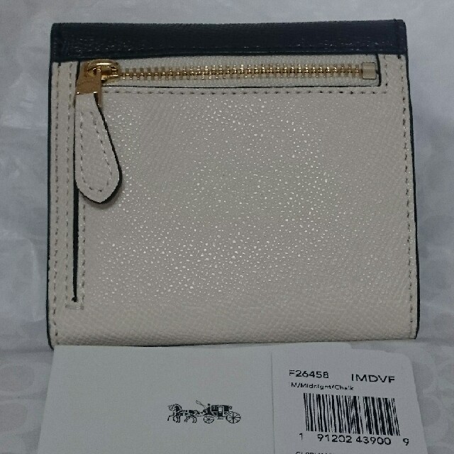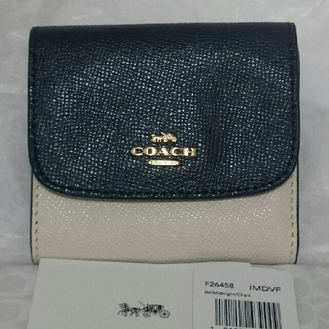 ☆COACH 新品 三つ折財布 紺 白 F26458 白 紺 正規品