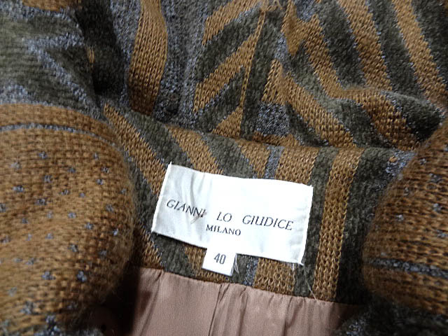 GIANNI LO GIUDICE ジャンニ ロ ジュディチェ イタリア製 総柄 ミックス織り ショールカラー ダッフル コート ガウン 茶 灰 ブラウン レア