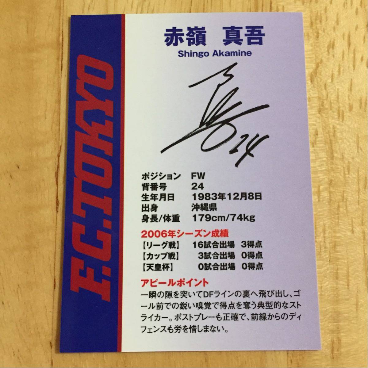 FC東京 2007.11.18 赤嶺真吾 オフィシャル マッチデーカード 新品 即決 非売品 ファジアーノ岡山 ガンバ大阪