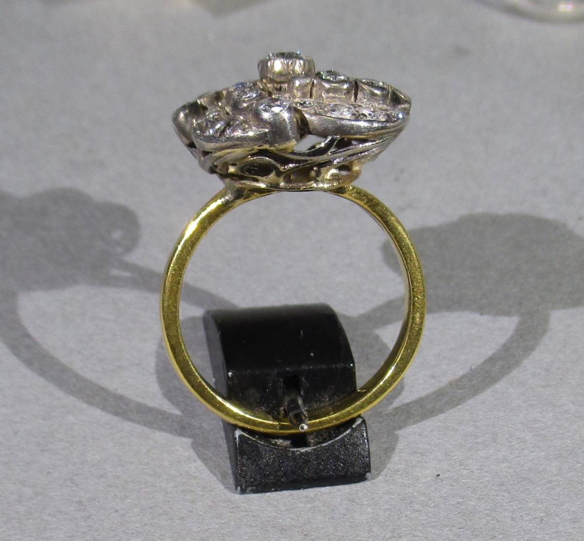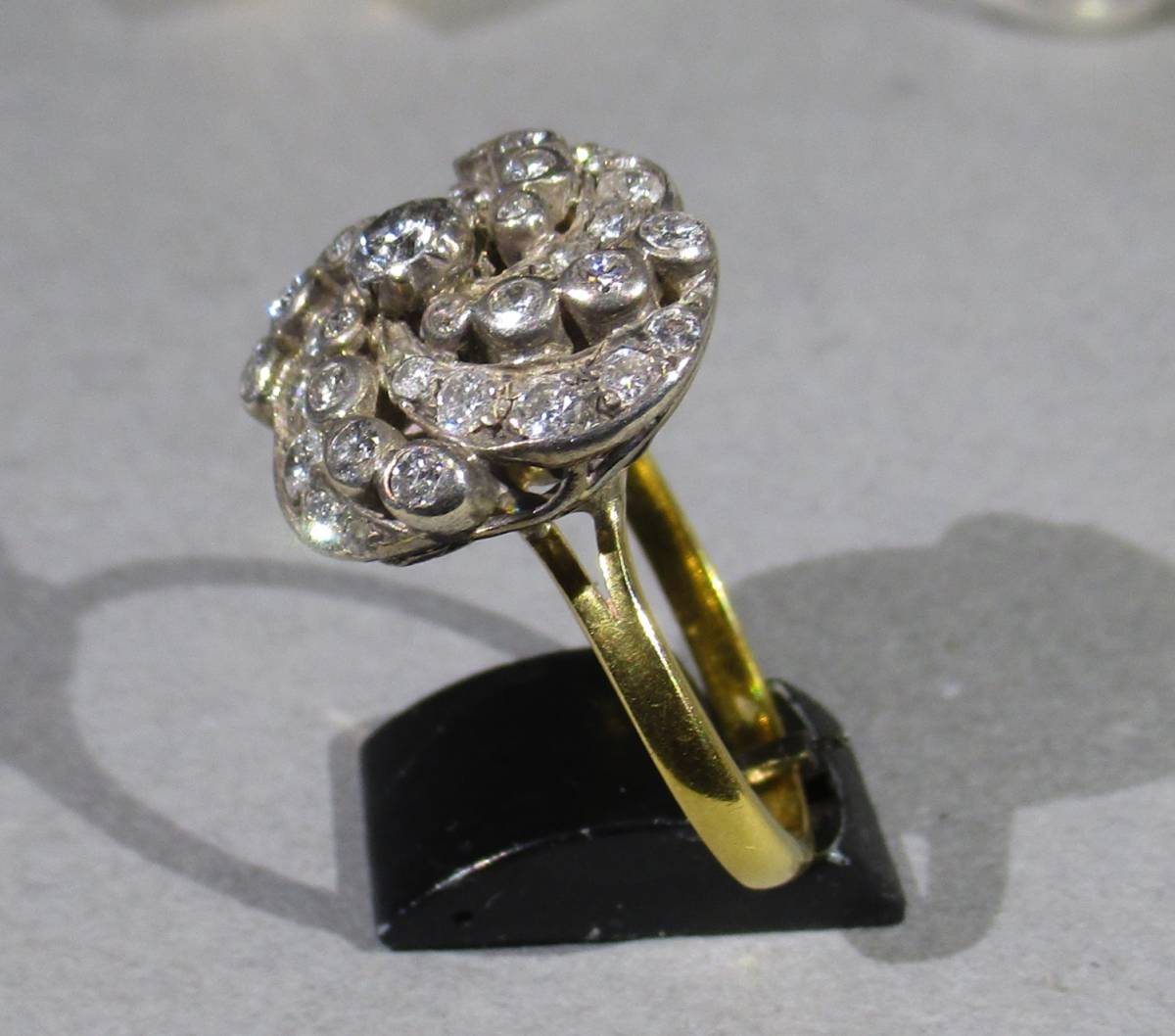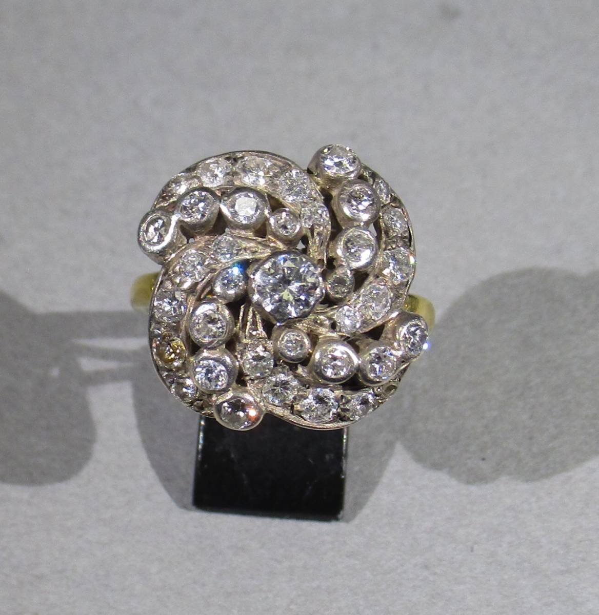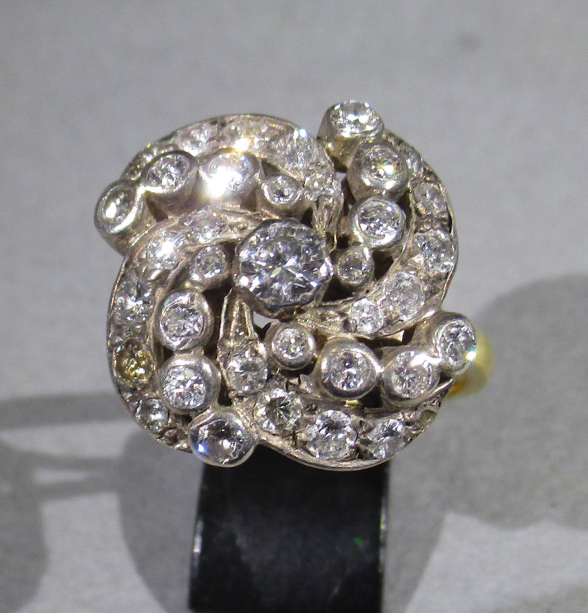 ☆18KYGベースにヨーロピアンカットのダイアを銀河型にデザインされたリングです。トップは銀で、ホワイトゴールドが無かった頃の当時の流行です。