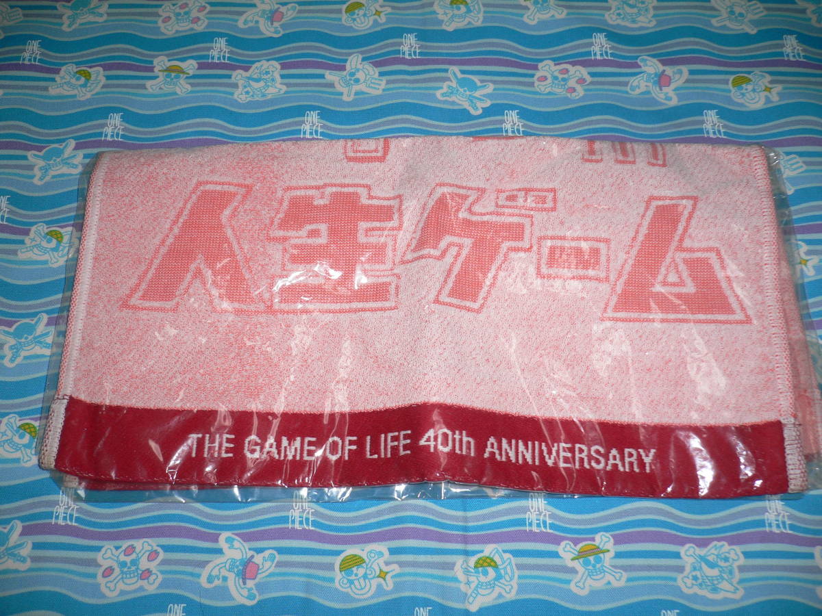 「人生ゲーム 40周年記念タオル」の新品です。大きさは、約36×34.5cmくらいです。4つ折りの跡があります。4つ折りのまま、封筒に直接入れての発送となり、送料は定形外郵便で180円です。以上の事をふまえて「自己紹介欄(出品リストの上部)を確認してから入札をお願いします」。