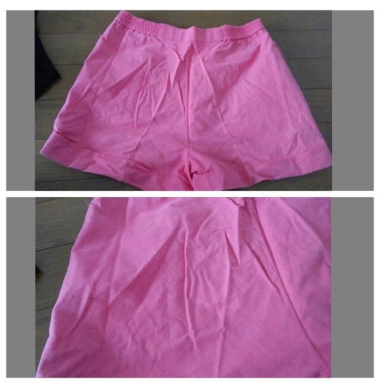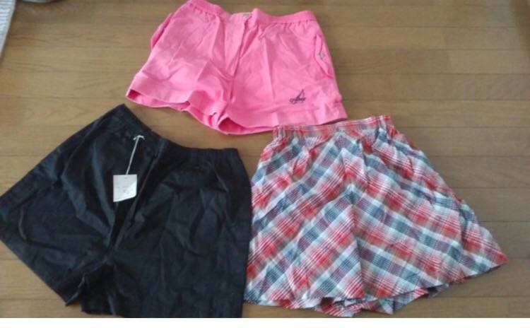 黒(未使用)→ウエスト約72~80×丈約37センチ、ピンク(後ろ汚れ有り)→ウエスト約63~(ゴム)×丈約33センチ、チェック→ウエスト約60~(ゴム)×丈約45センチ 。