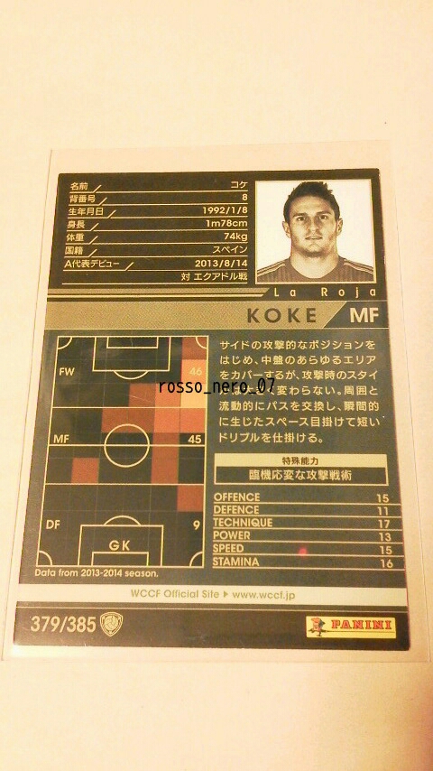 ☆WCCF2013-2014☆13-14☆379☆黒☆コケ☆スペイン代表☆Koke☆La Roja☆