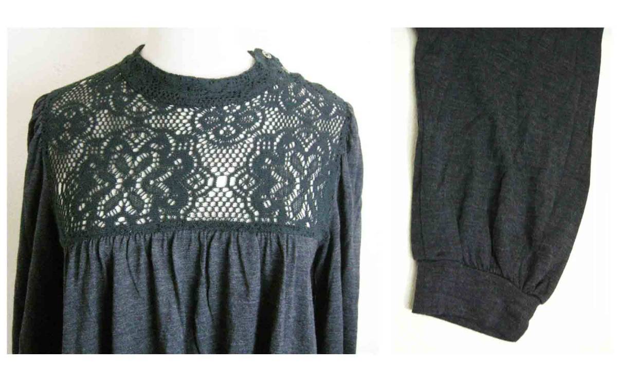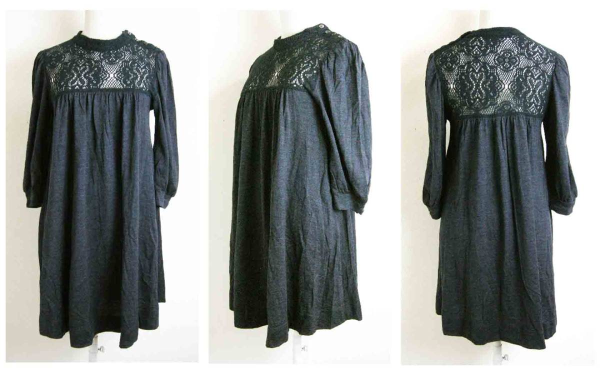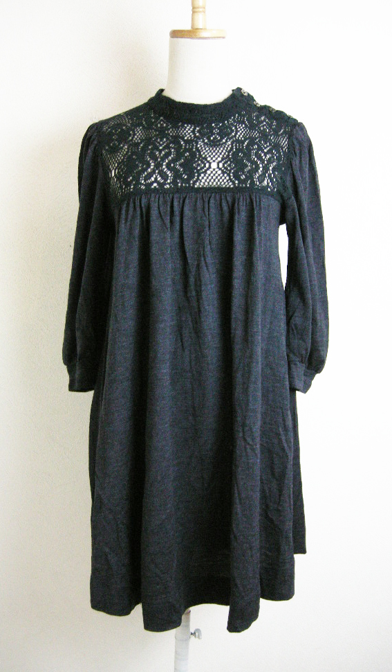 ■FLORENT【フローレント】黒グレー編みレースウールチュニックワンピース■