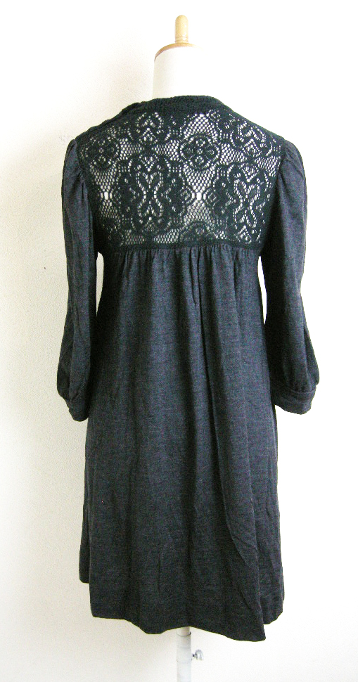 ■FLORENT【フローレント】黒×グレー 編み レース ウール チュニック ワンピース (M相当)