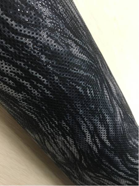 イギリス製高級グリッター生地、幅140cm×1m、お色は黒/グレーのゼブラ柄に黒のグリッターです。