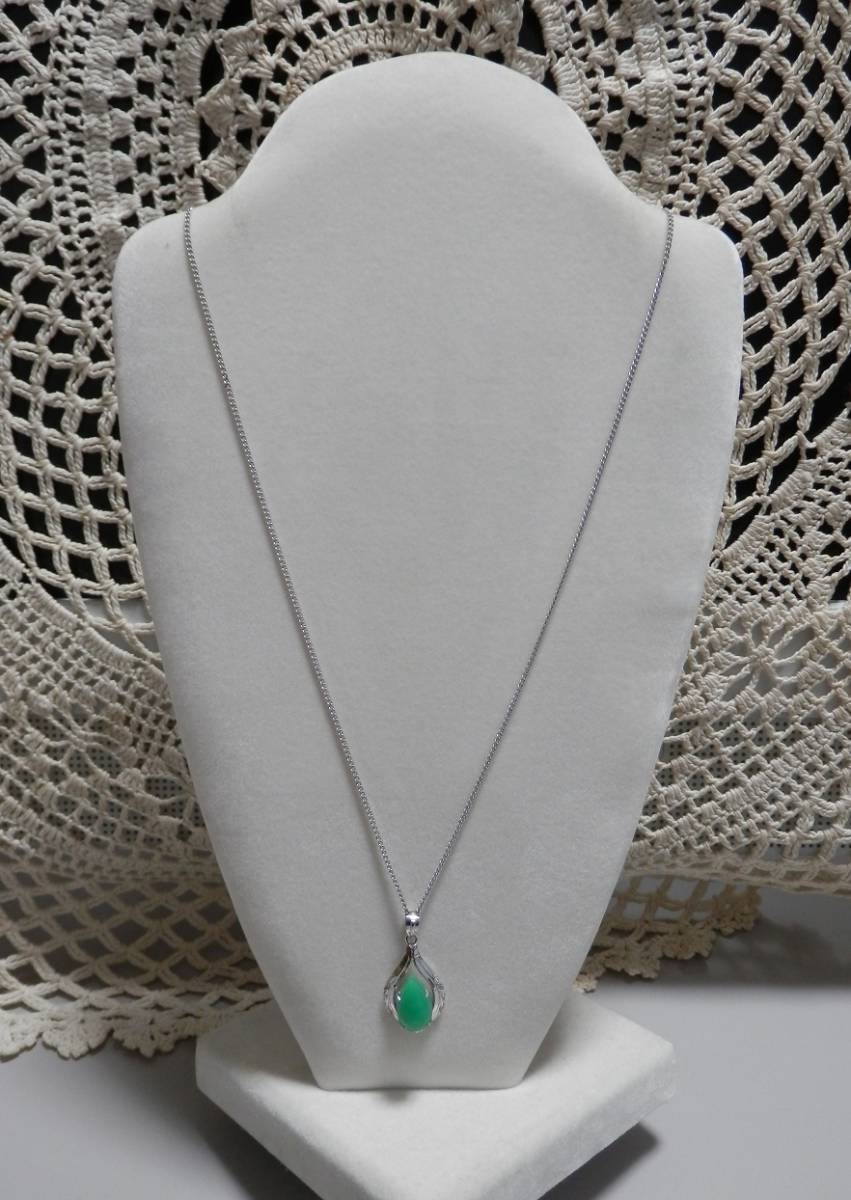 状態⇒USED(留め具のスプリングに緩みがありますが、押し返すようにしてご使用いただけます。また、ペンダントの裏面にメッキの剥がれもあります。) 重量⇒約、3.3グラム ヘッド刻印⇒SILVER チェーン刻印⇒STERLING 石の大きさ⇒約縦13×横8.5ミリ(厚みはセット石のため測定できません。) コメント⇒むらのない、綺麗な石です! |