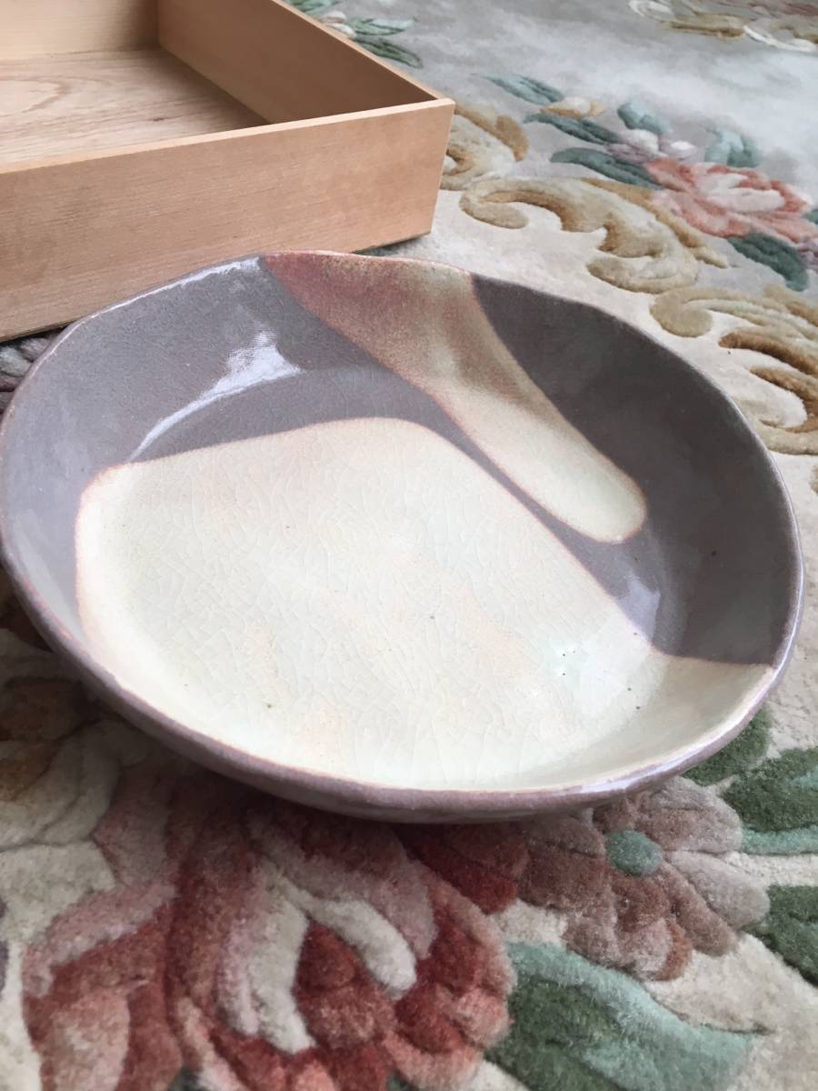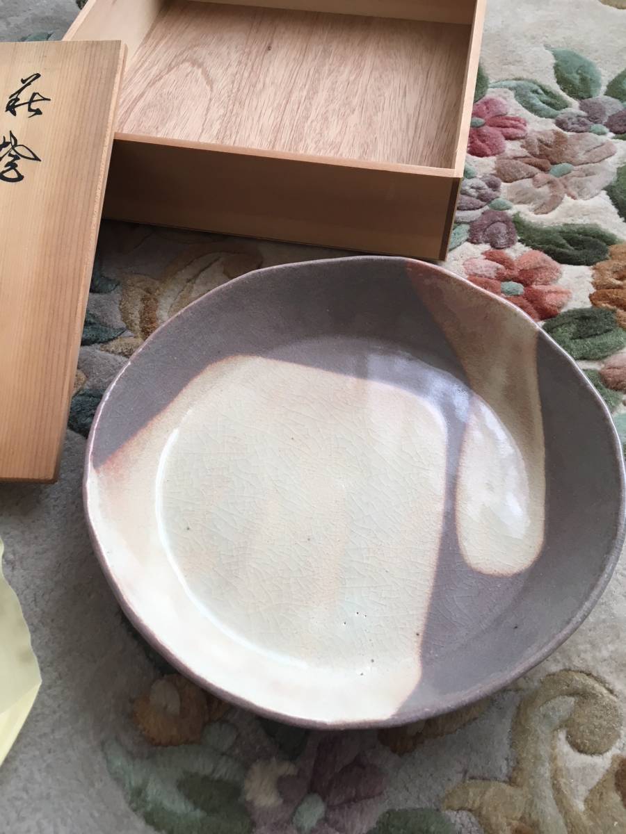 萩焼 名工 松野龍司の盛鉢、未使用、桐箱付き、です。実寸は、直系約22.4cm、高さ約4.5cm(素人採寸のため誤差はご容赦くださいますよう)。萩焼の優しい色と手触りに、松野龍司らしい、どこか凛とした佇まいが、素敵です。クローゼット整理をしております。どなたかお好きな方にお譲りしたく、どうぞ宜しくお願いいたします。