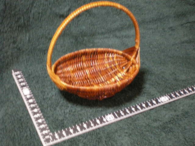 珍品フリマ・竹・籐] 取っ手付き 物入れ 小さな果物カゴ 大きさ:かごの長径 12.5cm  短径 9.3cm かごの深さ 3.5cm [送料無料]