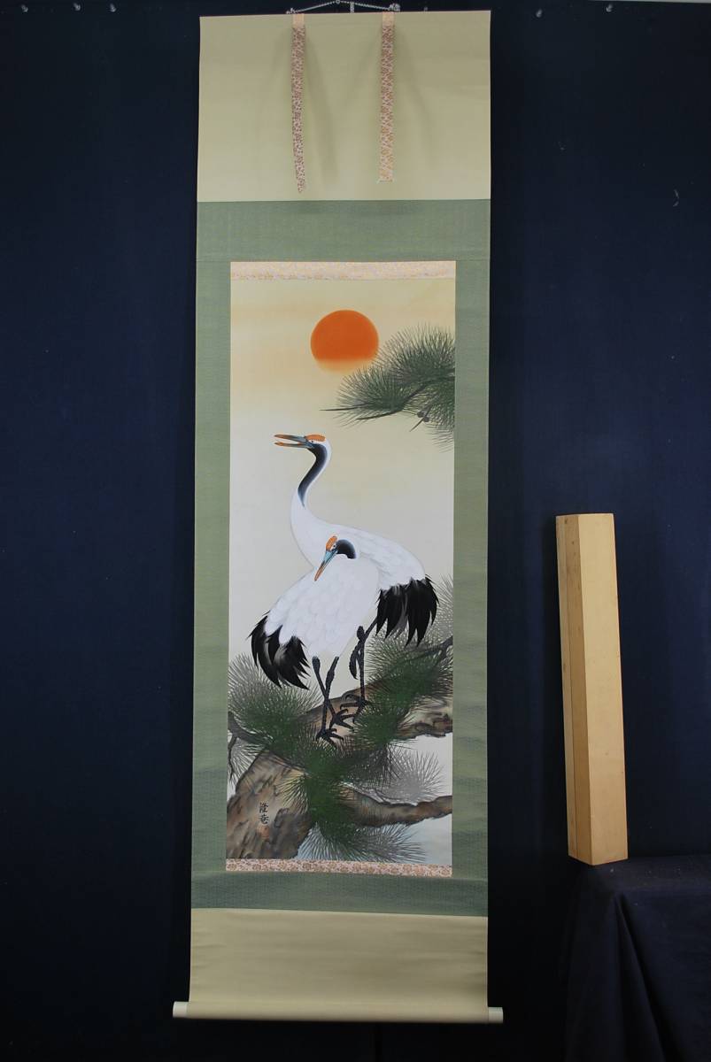真作/澄奄/松上双鶴図//掛軸☆宝船☆N-420 J
