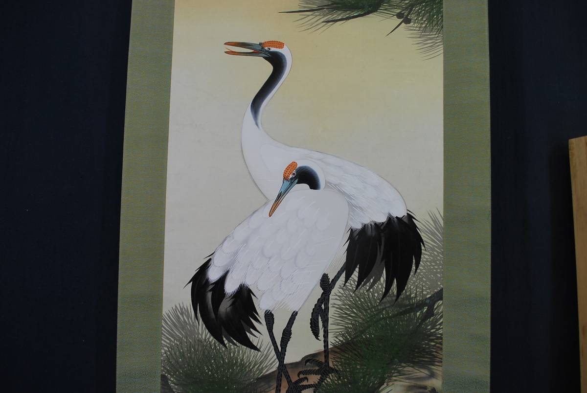 真作/澄奄/松上双鶴図//掛軸☆宝船☆N-420 J