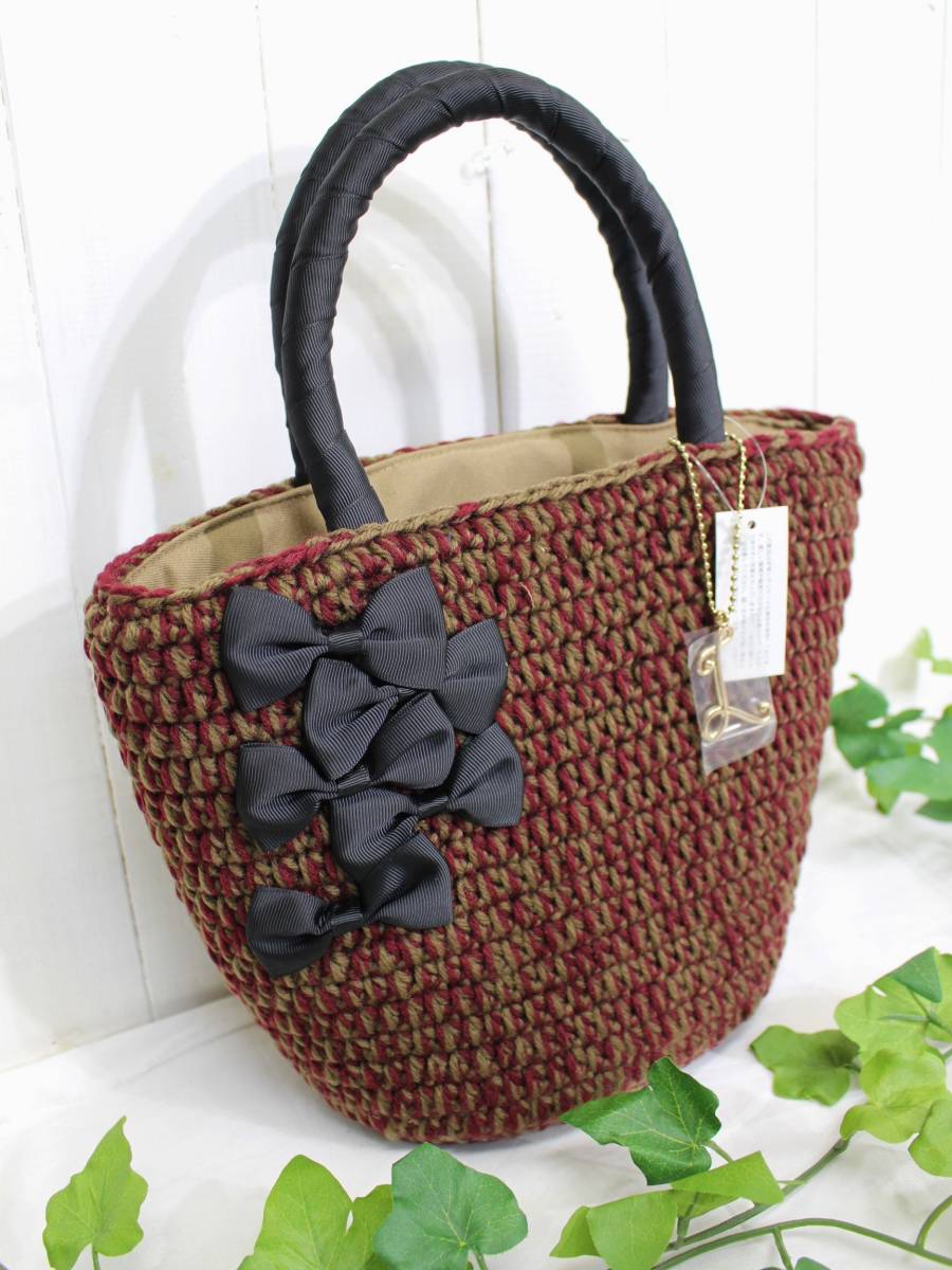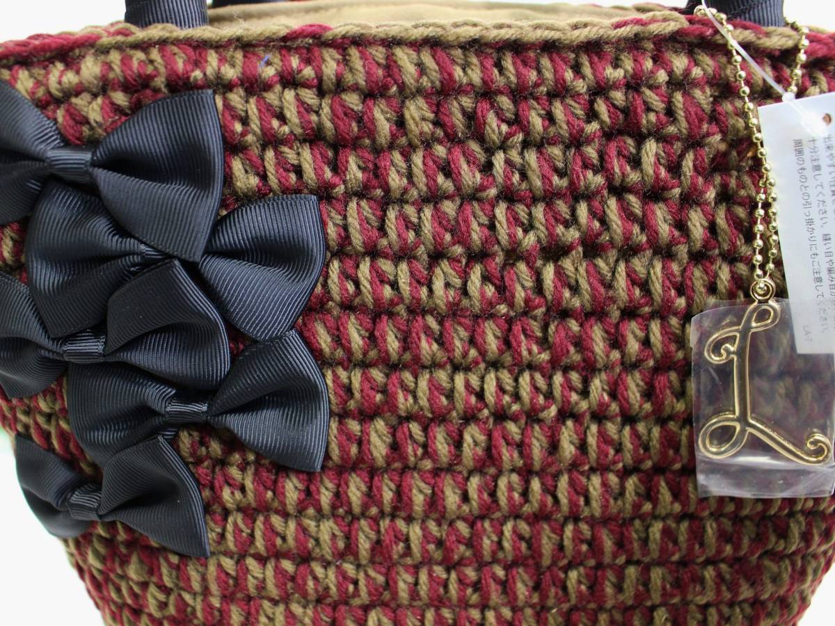 新品 ナノユニバース取扱い*Laugoaラウゴア*ニットかごバッグ 巾着ミニトートバッグ 【577-8186】