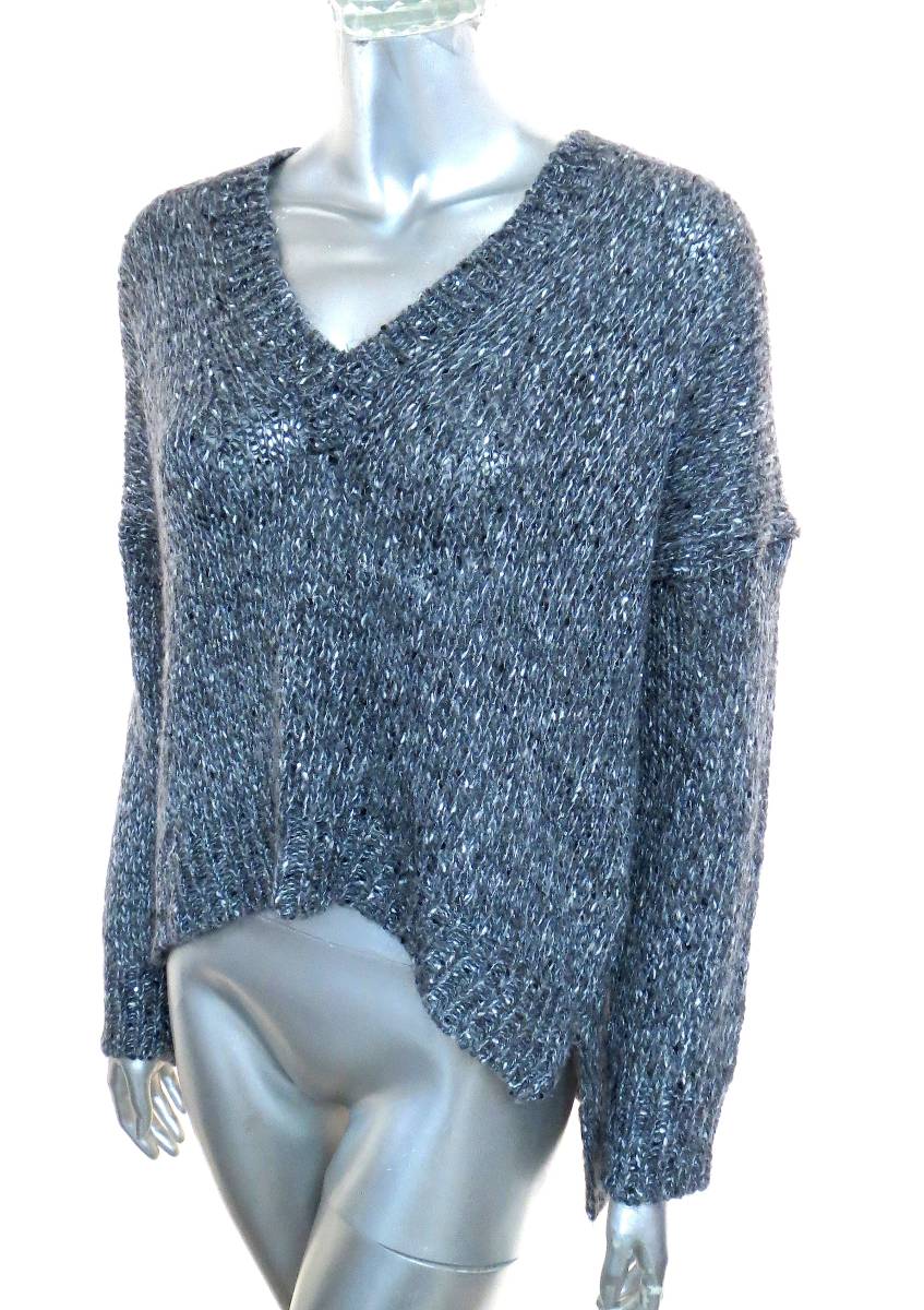 二点落札で送料無料! 261877654 ITALIAN YARN  グレー 長袖 Vネック ニット トップス レディース M セーター ZARA ザラ