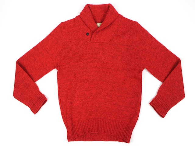 1912年の創業以来、品質にこだわる世界中のアウトドアファンから愛され続けてきたブランド『L.L.Bean』。こちらは70年代、LLビーンのショールカラーニットです。まだらなレッドボディーがLLビーンらしい配色の1枚です。素材は85%WOOL、15%NYLON。