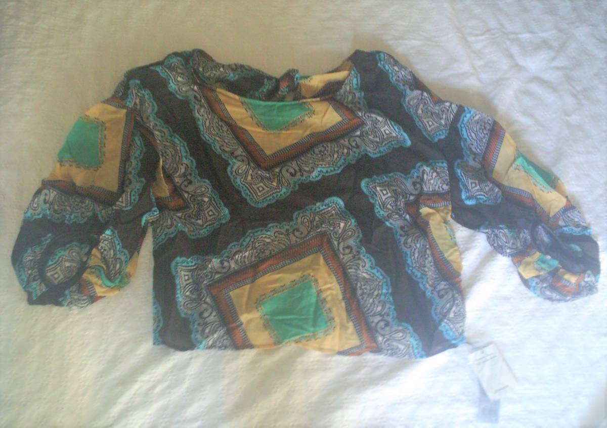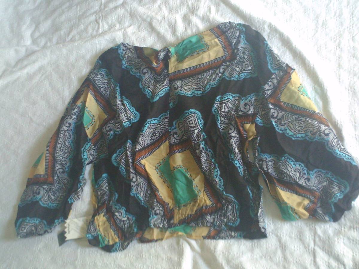 新品タグ付きです。 定価 商品代金5,400円+税 カラー ダークブラウン ブルー グリーン クリームイエロー オレンジ 白 素材 綿75% シルク25% 薄手で透ける素材です。インナーを着てください。 サイズ フリー 実寸 着丈45 身幅55 肩幅66 袖丈32cm 肩幅が広く、その分肩が下に降りているスタイルです。 背中の裾部分がゴムになっています。 | |||