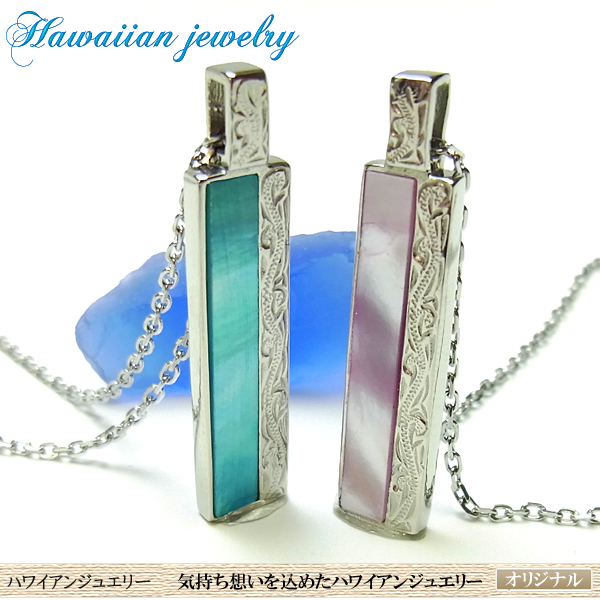 ★人気★ハワイアンジュエリー★金属アレルギー&温泉&海水浴ご使用OK★ステンレスペアペンダント★プレート&シェル&スクロール波模様★