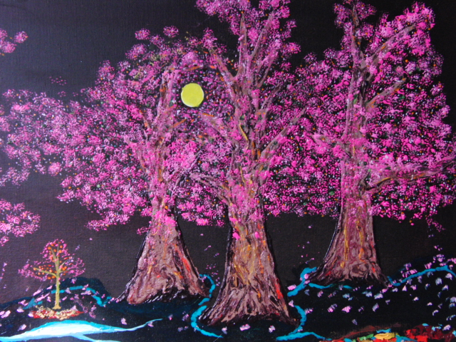 ≪国美協≫TOMOYUKI・友之、『夜桜(月水木)』、油彩画・P15号:65,2×50cm、油絵一点物、新品高級油彩額付、直筆サイン・真作保証付