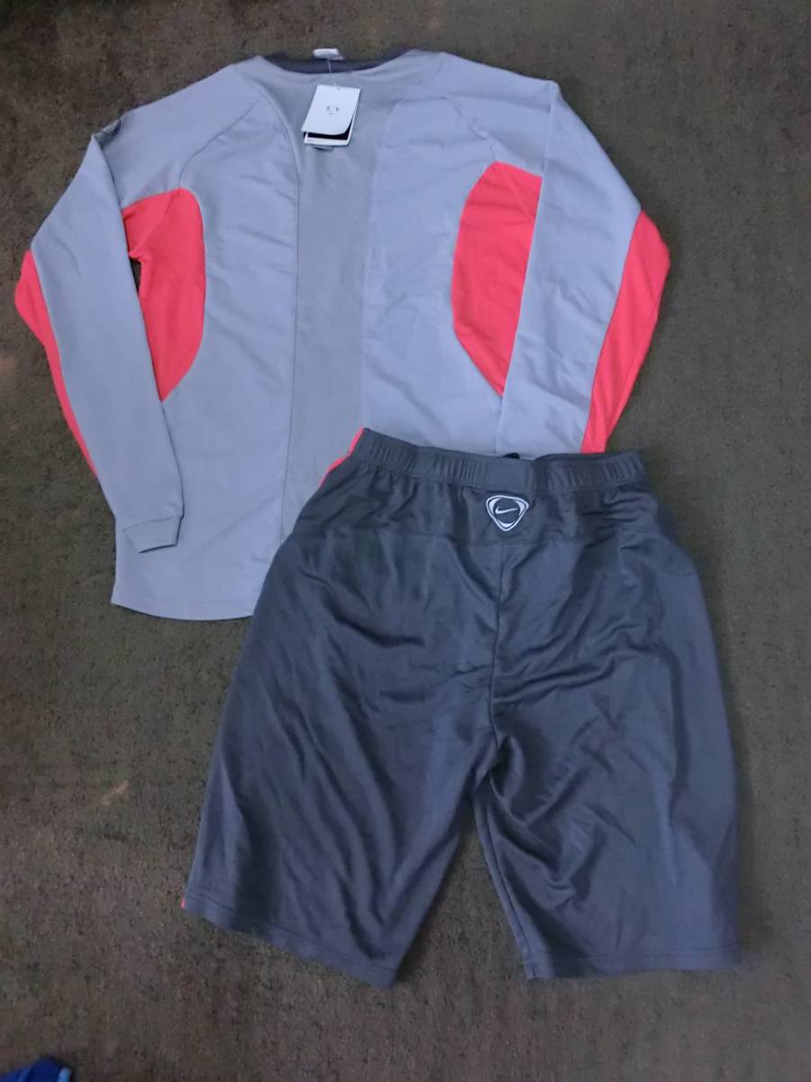 新品限定 ナイキ フットボールプラックティスセットアップです。Mサイズ、グレー×レッド、ポリエステル90、ポリウレタン10%です。シャツは胸囲87~92、伸長165~170CM表記、パンツはウエスト73~78です(パンツはポリエステル100%です)。限定、完売モデルです!!探していた方、この機会にいかがですか?