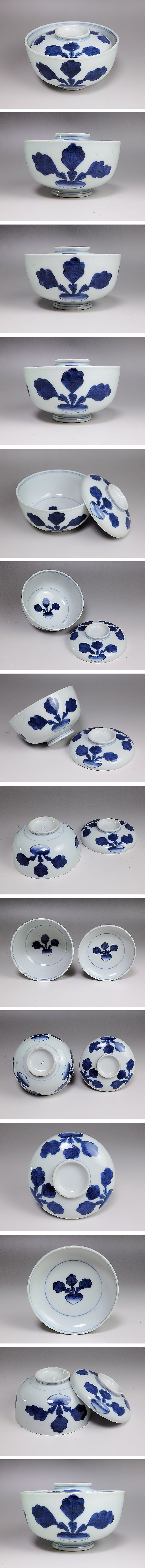 ★華心★ AFe-C029 古伊万里 染付 蕪の図 蓋茶碗 江戸期
