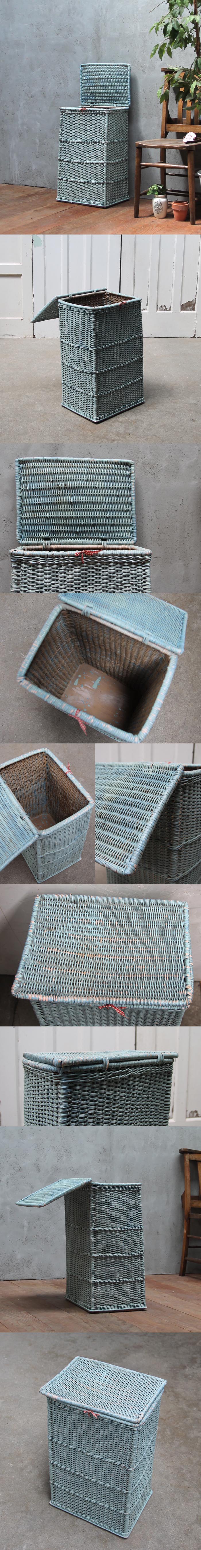 イギリス アンティーク ペイント ランドリーボックス/籐編み【おしゃれに収納できます!】N-236