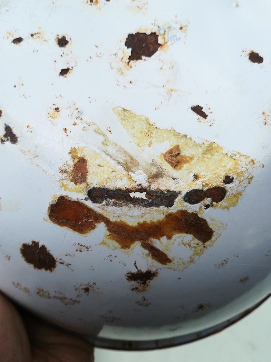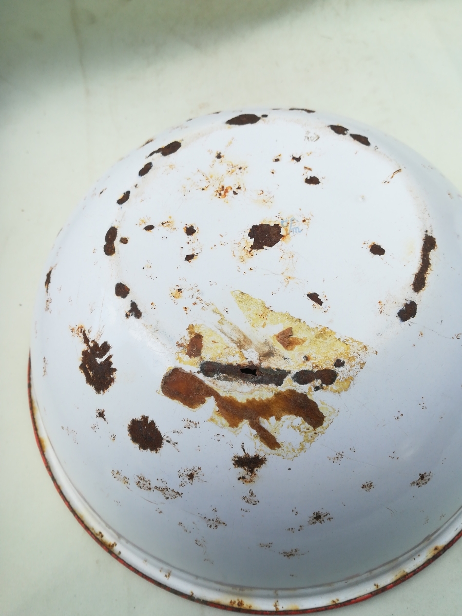 注意事項 :傷 剥がれ 錆び あり。1つ穴有りもう1つは穴などはあいておりませんが古い物になりますのでご使用のさいに何かがあっても保証いたしかねますのでご了承下さい。