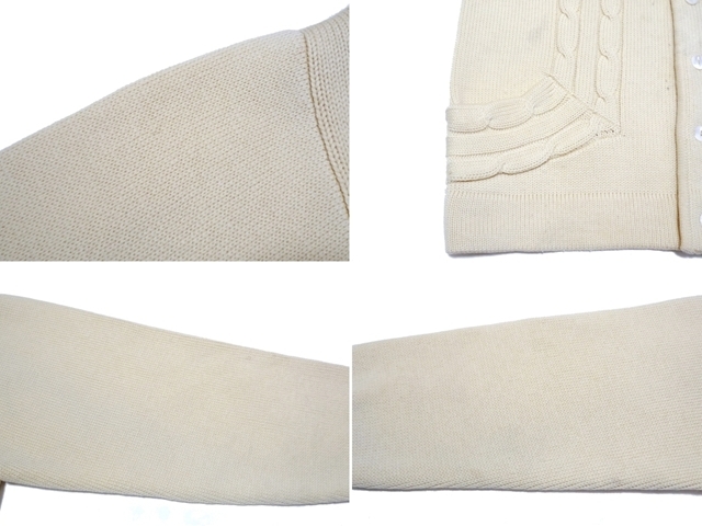 60~70’s ビンテージ OLEG Cassini イタリア製 カーディガン ニット M アイボリー 100%ウール 猫目ボタン 男女兼用 EU古着