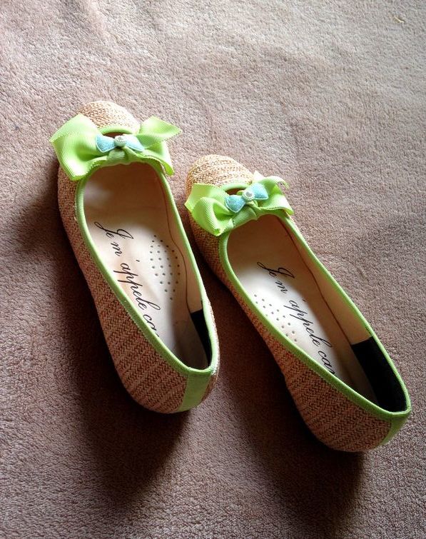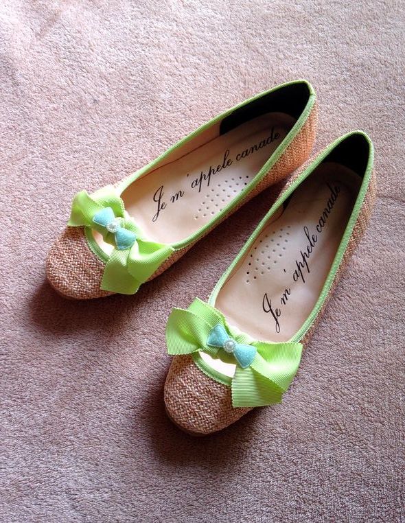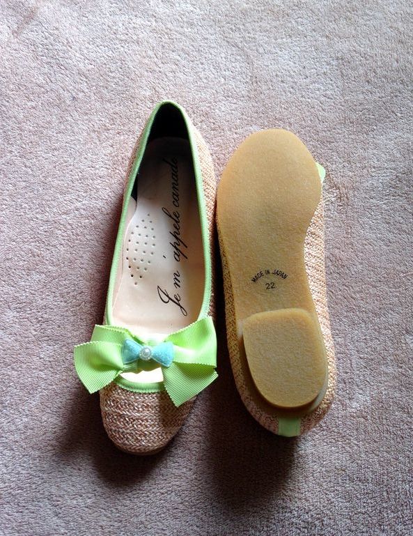 新品■定価5900円 canade◆ジュート グリーン リボン パンプス フラットシューズ靴 22