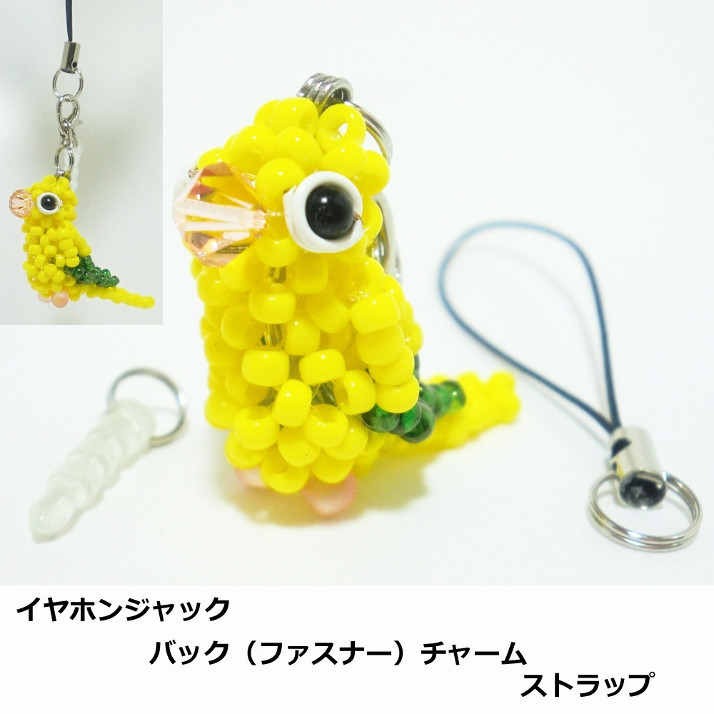 ビーズの小鳥★3WAY(ストラップ・イヤホンジャック・ファスナーチャーム)工房小鳥屋さん