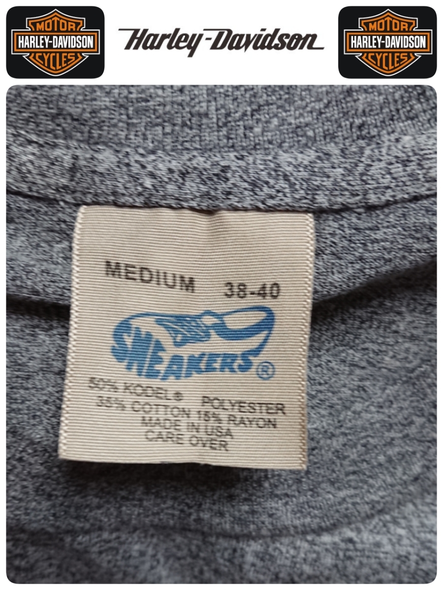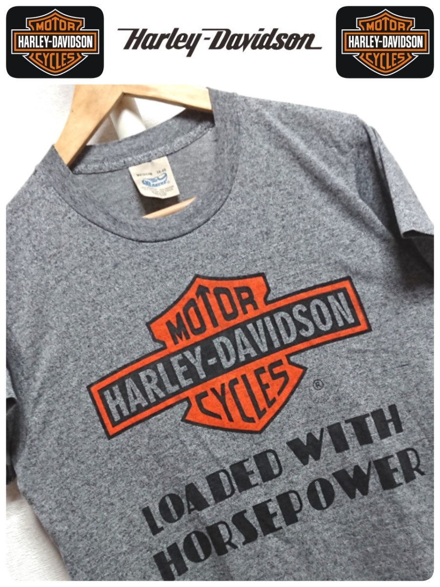 こちらは、『超悶絶級!! 80S SNEAKERS スニーカーズ USA製 ヴィンテージ ハーレーダビッドソン染み込み5段両面プリントポリエステルコットンTシャツ』になります。