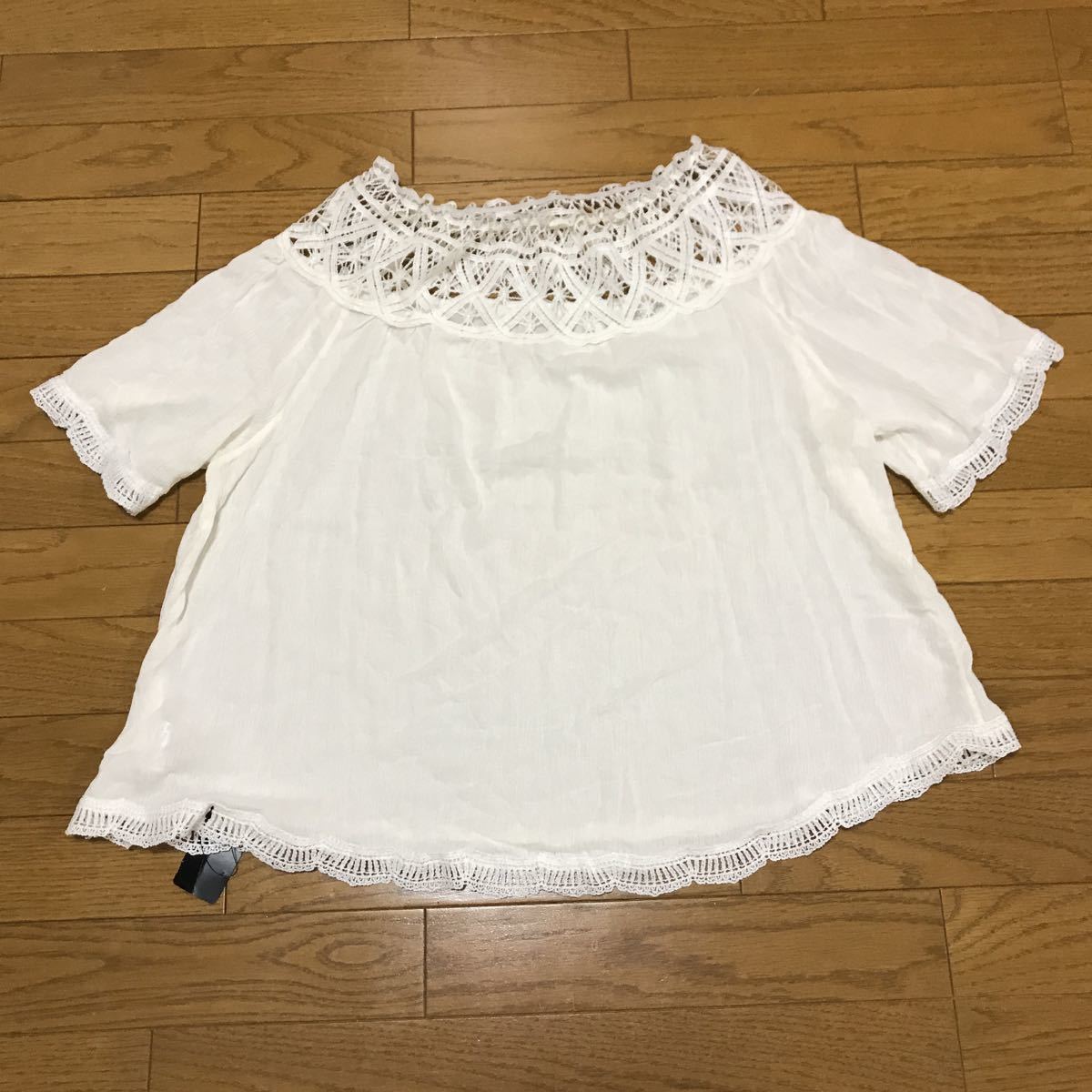 送料無料■タグ付新品■SPRAY PREMIUM スプレイ プレミアム ホワイト 胸レース オフショルダーカットソー サイズF
