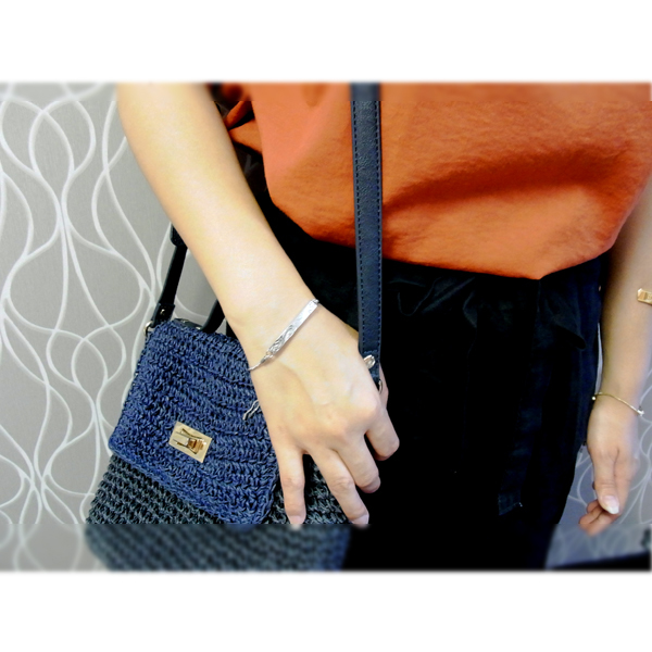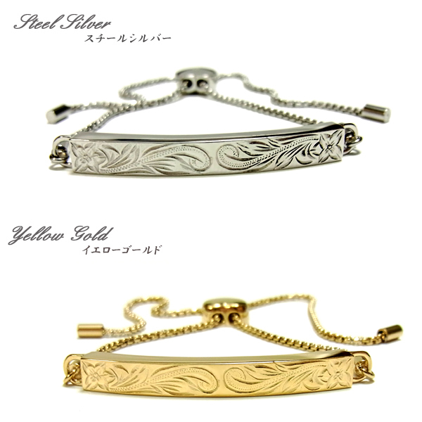 ステンレスブレスレットシルバー&ゴールドプレート&プルメリア&マイレ&スクロール