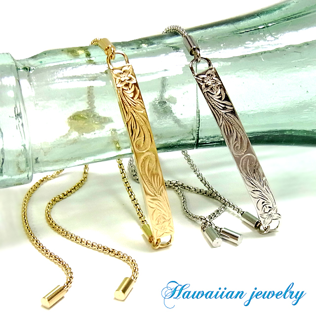 ★インスタ映★SNS★ラスト1点★ハワイアンジュエリー★金属アレルギー&温泉&海水浴OK★ステンレスブレスレット★プレート&プルメリア