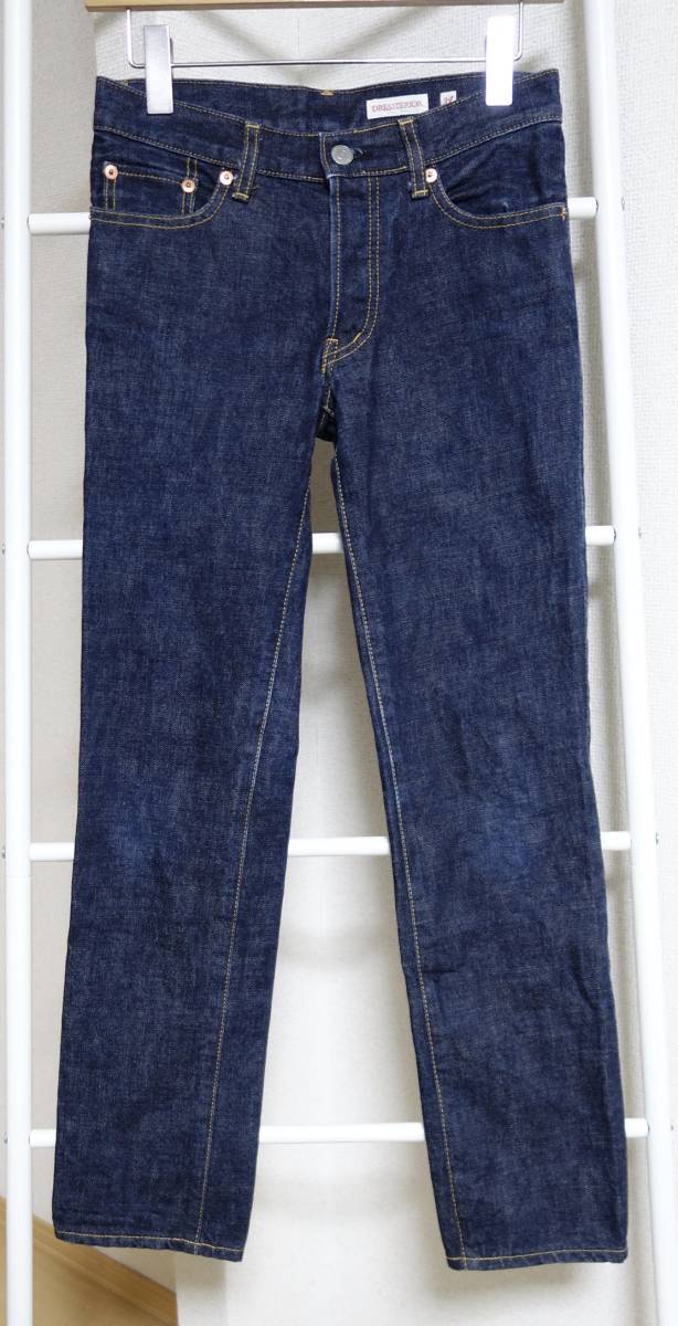 商品詳細 ■ドレステリア定番の濃紺デニムですので流行に関係なく、シーズンを通して履いて頂ける1本です。お好きな方は是非どうぞ ■色:画像参照 ■素材%;綿100 ■サイズ表記:34 実寸:cm ウエスト;74 股上;20.5 股下;75 腿幅;25(股下0CMを計測) 裾幅;16.5 ■生産国;日本 ■状態;usedですが,特に記載するダメージなく状態良好です。 |